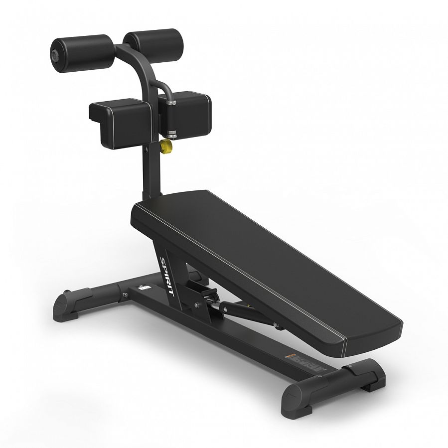 Регулируемая скамья для пресса от Spirit имеет надежную и прочную конструкцию. Доступно несколько вариантов конфигурации; каждый пользователь сможет настроить тренажер под себя. Широкая скамья и регулируемая опора для ног обеспечивают стабильность положения тела. Есть встроенные колесики, которые позволяют легко транспортировать изделие.