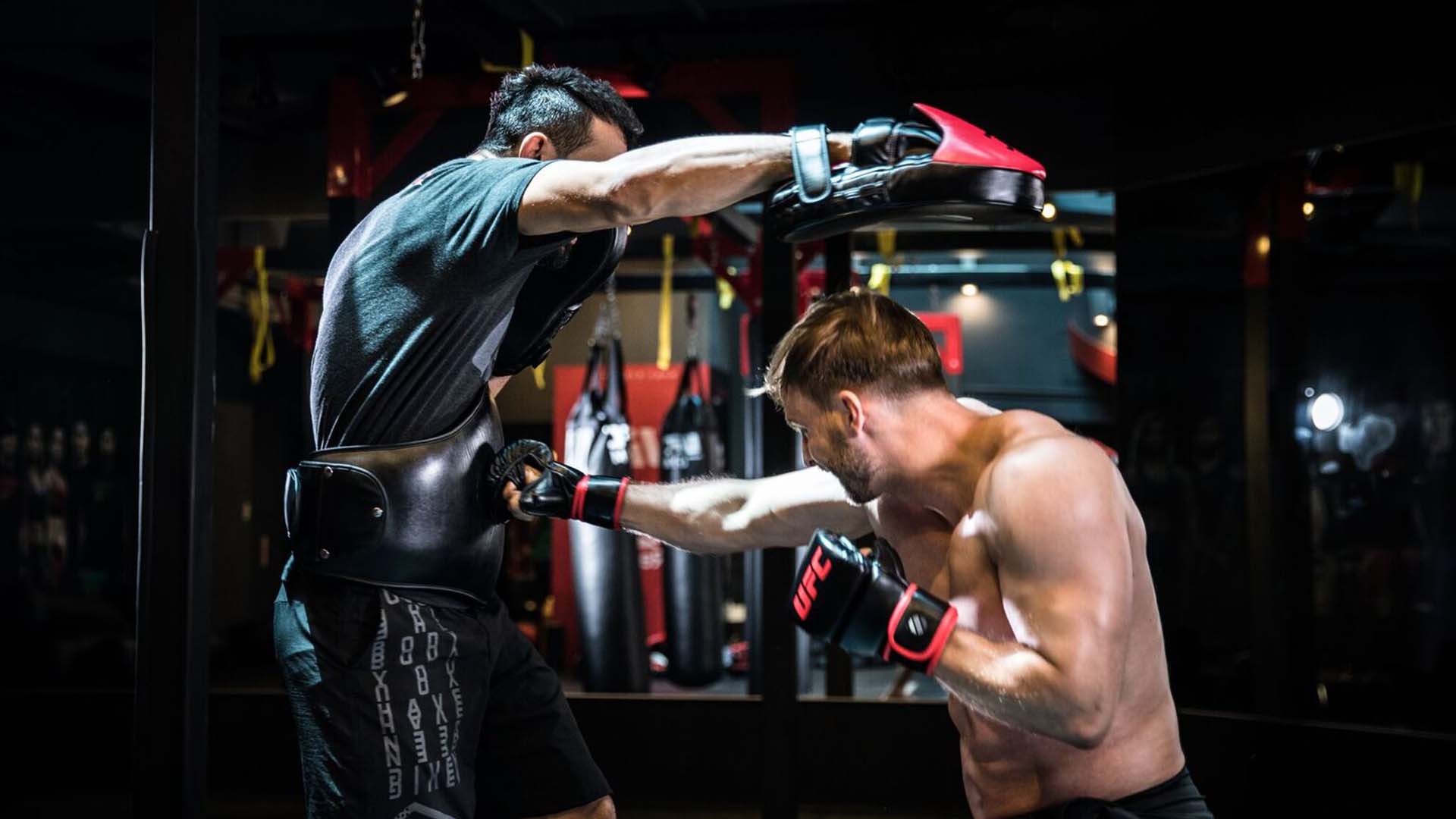 Боксерские лапы UFC из качественной синтетической кожи имеют удлиненную форму и идеально подходят для работы руками и ногами.
