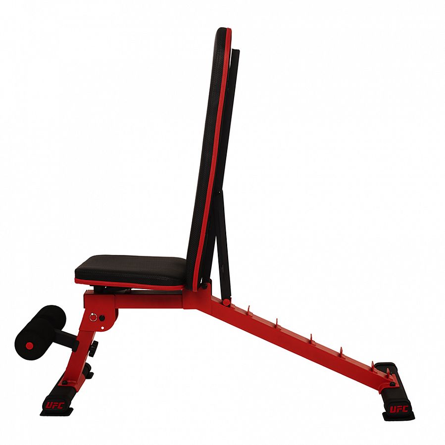 Скамья универсальная UFC выполнена из прочной стали толщиной 1,5 мм и предназначена для выполнения упражнений с гантелями и штангой. Такая скамья станет хорошим дополнением для домашней гимнастики, а также идеально подойдёт для выполнения различных силовых упражнений. Усиленный металлический каркас и продуманная конструкция обеспечивают высокую устойчивость тренажера при выполнении любых упражнений. Она идеально подходит для тренировок руки, плечей, груди и спины. Универсальная скамья оснащена надежной системой регулировки наклона: задняя спинка имеет 7 положений, а сидение — 3.