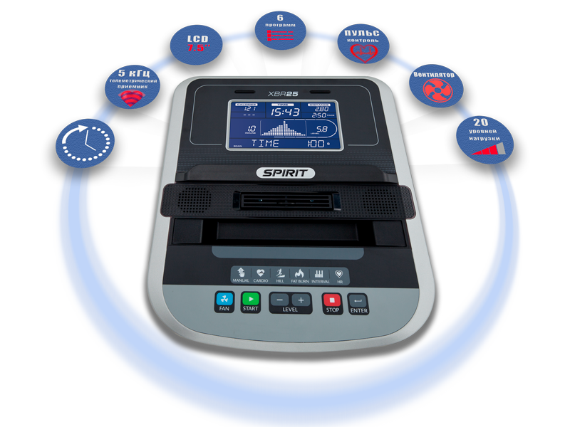 Тренажер SPIRIT XBR55 (2017) является привлекательной моделью для пользователей, которые ценят плавность хода и широкий диапазон данных о тренировке.